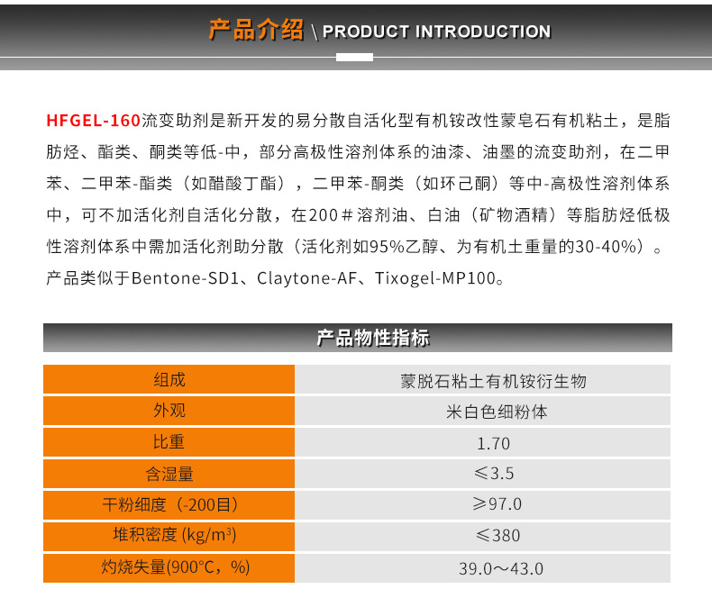 商品名称:丰虹HFGEL-160有机膨润土 商品货号 : TDD010741 品牌 : 其它 产地 : 浙江安吉 产品型号 : 25KG 包装规格 : -- 等级 : 1 生产许可证号 : 可咨询客服 厂商 : 丰虹 包装规格 : 25KG/包 产品用途 : 防腐漆、船舶漆、工业装饰漆、汽车底漆及密封材料 是否危险化学品 : 否