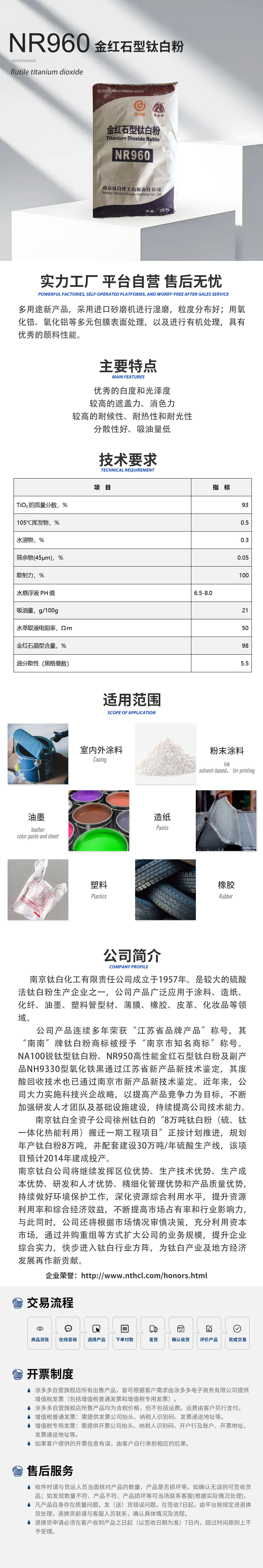 南钛NR-950金红石型钛白粉 通用型二氧化钛 高遮盖高白度高耐候性钛白粉 南京生产
