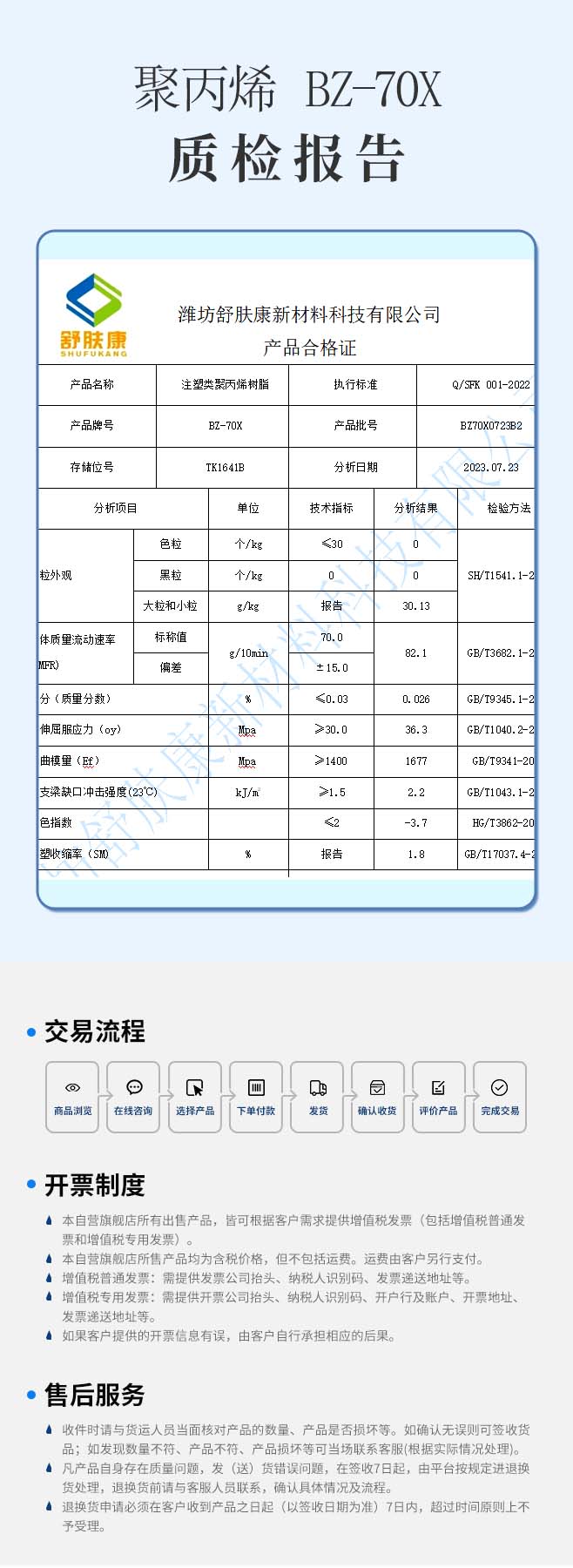 商品名称:舒肤康 聚丙烯 BZ-70X 商品货号 : TDD016875 品牌 : -- 产地 : 山东省 产品型号 : BZ-70X 包装规格 : 25kg 等级 : - 生产许可证号 : -