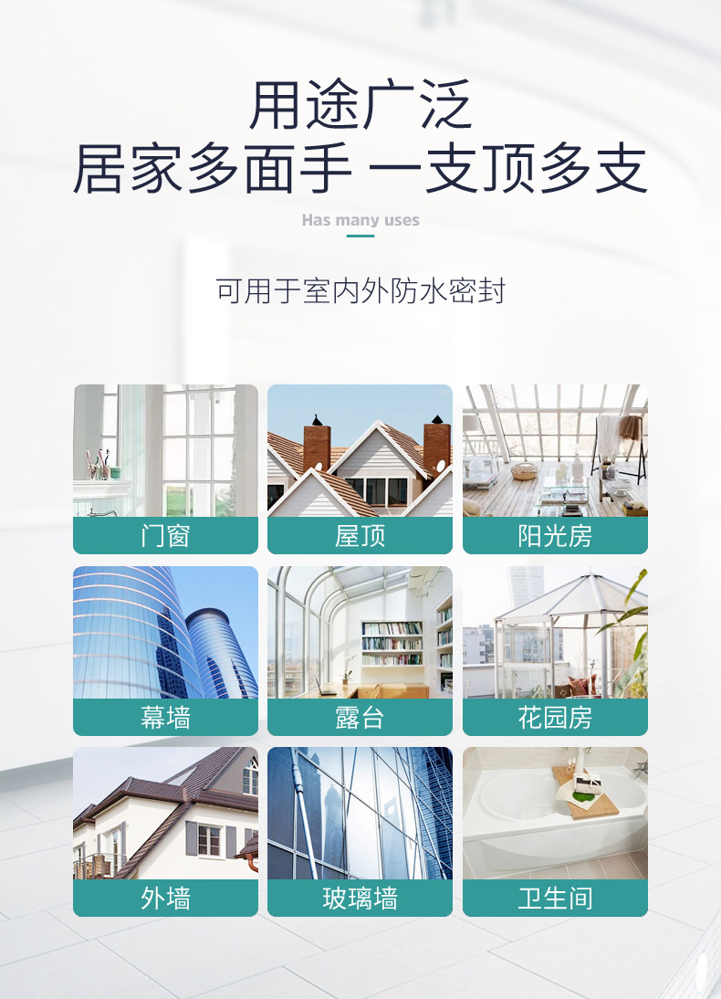 3)挤出性和触变性好,与大部分建筑材料表面有良好的粘附性