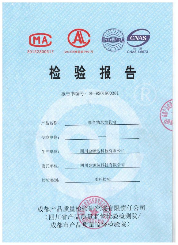 商品名称:金源达 丙烯酸酯乳液JYD-608 商品货号 : JYD-608 品牌 : 金源达 产地 : 四川 包装规格 : -- 等级 : -- 生产许可证号 : -- 厂商 : 四川金源达科技有限公司 产品型号 : 金源达JYD-608 包装规格 : 50公斤塑料桶、200公斤铁桶 产品用途 : 1.JS防水涂料 2.柔性K11防水涂料 是否危险化学品 : 否
